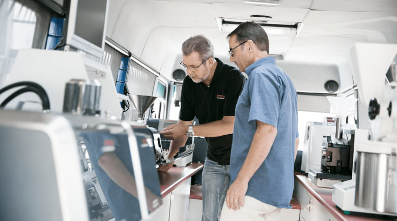 Approfittate dell'opportunità di discutere le vostre applicazioni speciali con i nostri esperti. Provate i nostri strumenti per la macinazione, la setacciatura, la suddivisione e la granulometria nel nostro laboratorio bus completamente attrezzato, direttamente presso la vostra sede - naturalmente in modo gratuito e non vincolante.