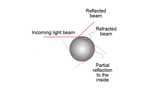 La riflessione avviene prevalentemente sulla superficie di una particella – secondo la legge: L'angolo di incidenza è uguale all'angolo di emergenza.
