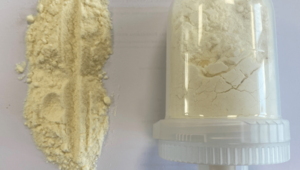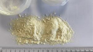 We used our Knife Mill PULVERISETTE 11 with the adapter for single-use grinding bowls. By using the Single-Use grinding bowls, the complicated cleaning process could be avoided. We programmed a SOP with short grinding times of 3s and 1s pause time. After 5 repetitions of these grinding steps, the entire 40 ml of rosin crystals had been ground into very fine powder.
