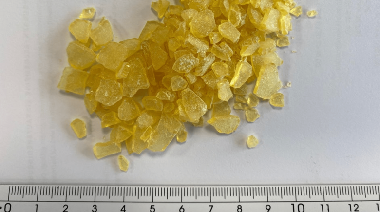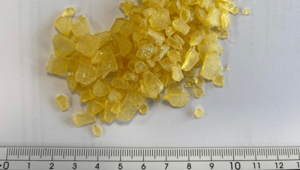 The rosin was supplied in larger crystals with an edge length around 10 mm. To approach the comminution process correctly, it was first necessary to understand how the adhesive character of a fine rosin powder is created. The powder is strongly hygroscopic and attracts any moisture from the environment. In addition, any heat generated during the grinding process can directly cause strong sticking and prevent the formation of fine powder.