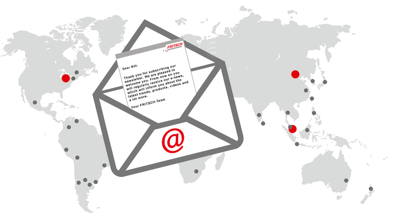 Riceverete regolarmente le novità su FRITSCH via mail. Gratis ovviamente. La newsletter è incentrata sugli attuali sviluppi, sulle tendenze e su tutto ciò che c'è da sapere su macinazione e granulometria, ma non solo: sono presenti anche informazioni sui nuovi prodotti FRITSCH, novità sull'azienda e molto altro ancora. Con la newsletter FRITSCH sarete sempre aggiornati!